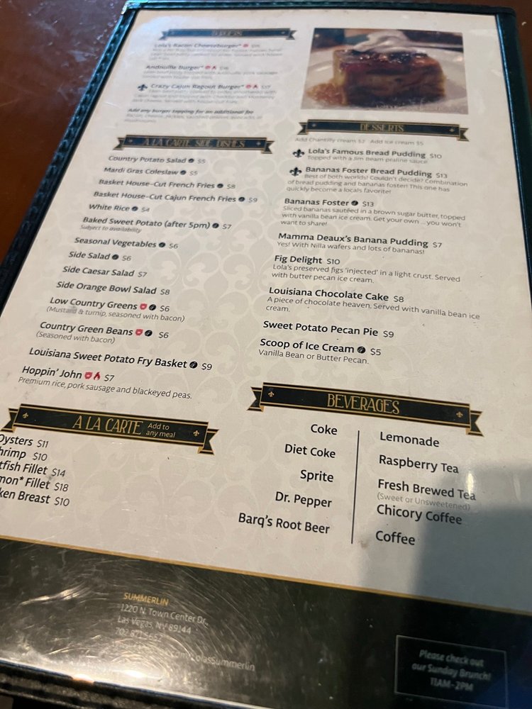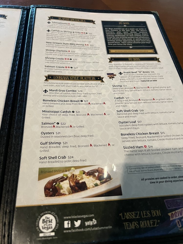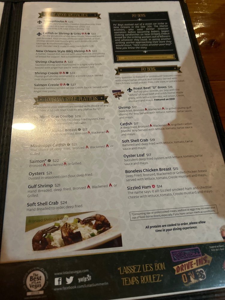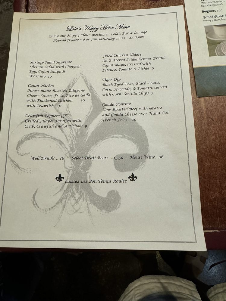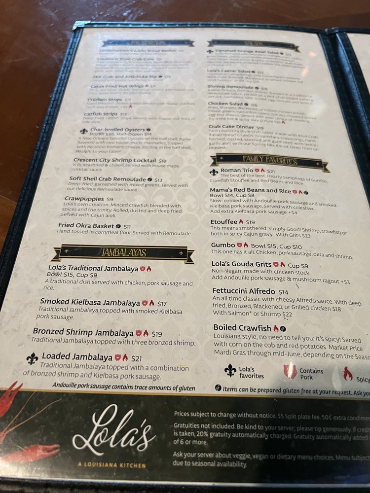 Lola’s A Louisiana Kitchen Menu